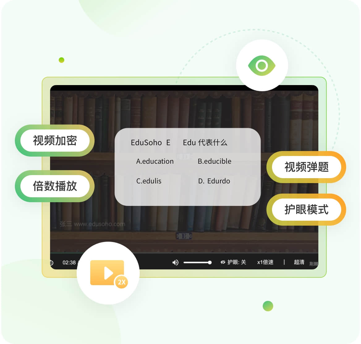 視頻點播、文檔點播、視頻彈題、播放數據統計,專為學習場景打造的企業級在線視頻及文檔點播服務。